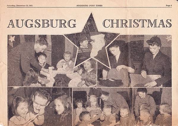 The regional U.S. Forces newspaper from 1947 until ca. 1952, the ‘Augsburg Post Times’, reported on Christmas care of Augsburg children in 1951.